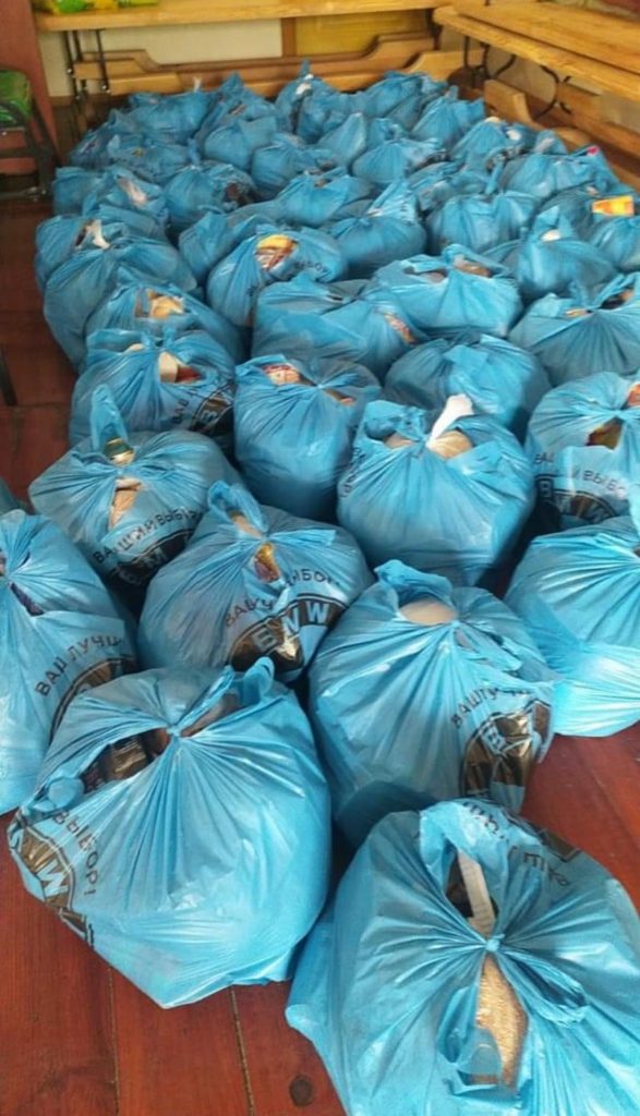 ✅ Сьогодні у Бородянку доставили на територію церкви, що знаходиться біля кладовища, 200 продуктових пакунків: